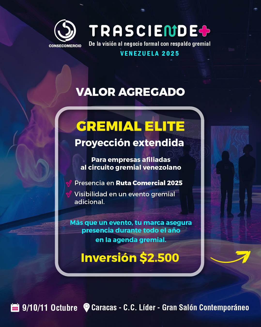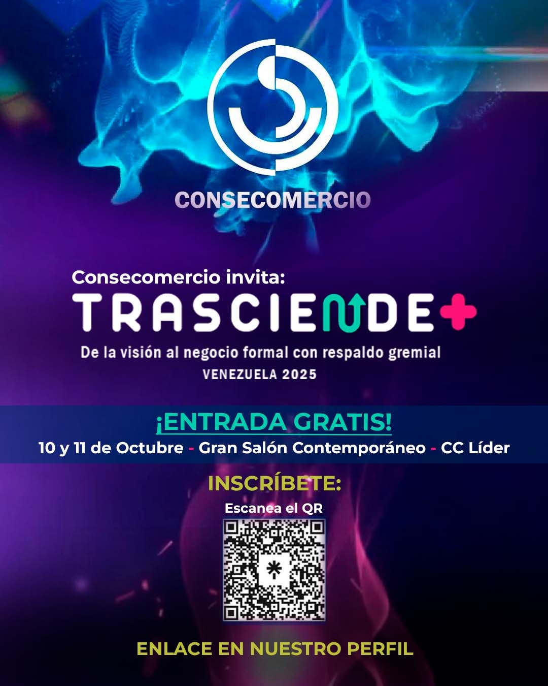 Trasciende+ es el encuentro nacional organizado por Consecomercio que reúne a todos los actores del ecosistema económico para impulsar el crecimiento del comercio y los servicios en Venezuela.